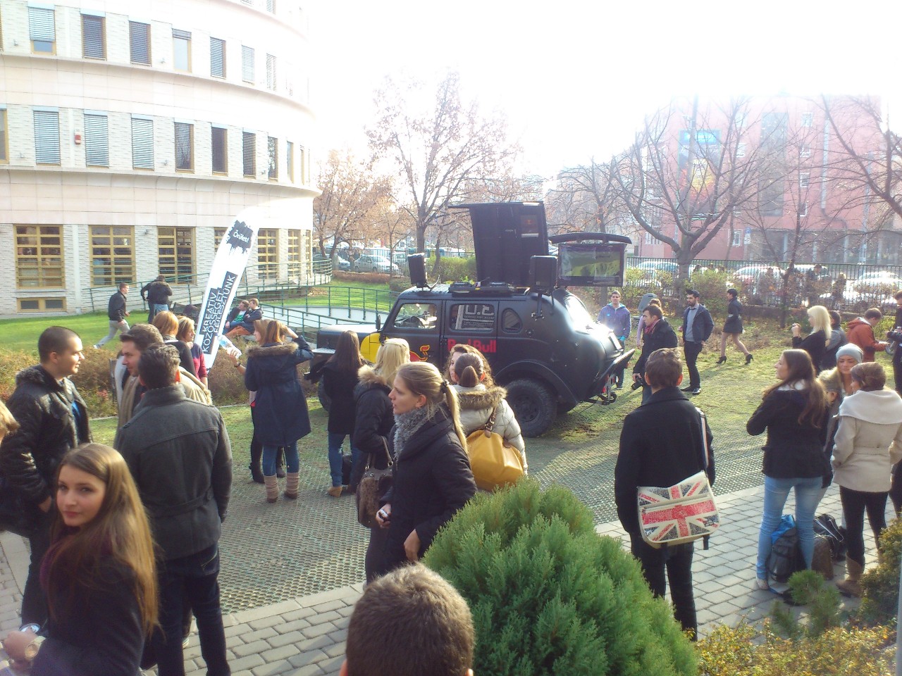 Szóval gyakorlatilag a RedBull beköltözött a BKF-re, ingyen energiaitalokat osztogattak, némi promos anyaggal karöltve, ami pl. egy kulcstartóban nyilvánult meg (hát nem sokat költöttek rá). De ami a lényeg, hogy tiszta jó party hangulatot varázsoltak a suliba és ez sokat dobott az aznapi hangulatomon, amit persze rögtön lelohasztott a következő óra, de nem lehet minden tökéletes ugye?