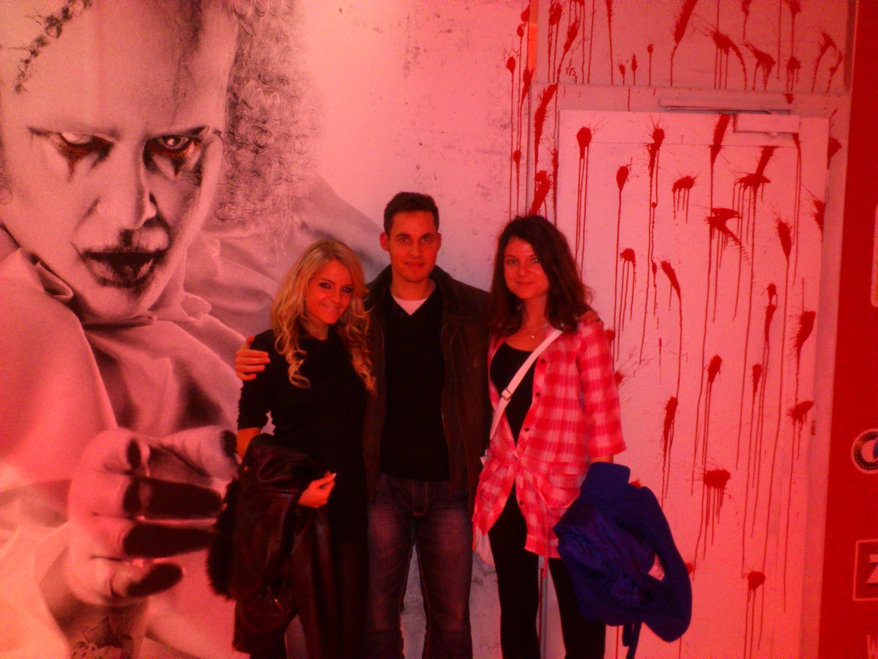 Mivel viszonylag sokan voltak, kb 10-15 perc volt a bejutási idő. Azt meg kell adni, hogy elég jól felépített, jól megszervezett és érdekes kis dolog volt ez (természetesen képeket nem készíthettünk bent, de csináltunk közös fotót kint, amit a bejegyzés végén láthattok). Szóval egyik szobából a másikba kísértek minket, és a történelem nagyobb gyilkosairól készítettek egy kiállítást, pl. Hasfelmetsző, Capone...néhány speciális effektes szoba is helyet kapott, de ezeket max. akkor élvezhetitek, ha ott vagytok ti is, mert nem akarom lelőni a poént :)